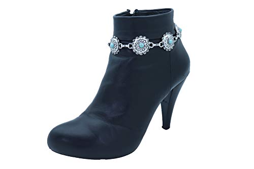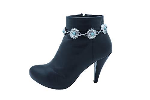 in-demand ! Women Western Fashion Jewelry Antique Metal Boot Chain Anklet Shoe Flower Charm Strap Turquoise Blue Bead