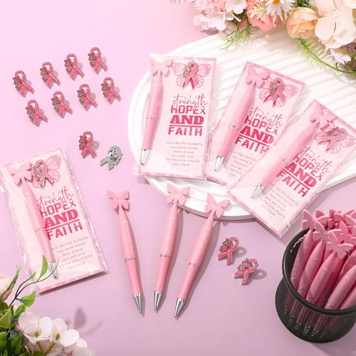 72 Set Breast Cancer Awareness Gift Include No One Fights Alone Pens Pink Ribbon Butterfly Pin Faith Inspirational Card Breast Cancer Awareness Supplies Be Aware Survivor Gift