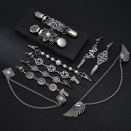 Tornito 12pcs Vintage Sweater Shawl Clips Retro Cardigan Collar Shirt Waist Dresses Chain Clip Antique Flowers Pattern Brooch Pins for Women
