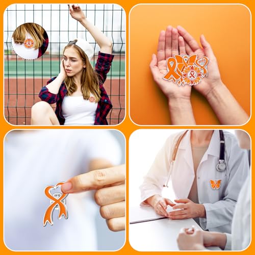 60 Pcs Orange Cancer Awareness Pin Bulk Leukemia Awareness Product Kidney Cancer Lapel Pins Gun Violence Multiple Sclerosis Lymphoma Orange Ribbon Items for Charity Public Social Events
