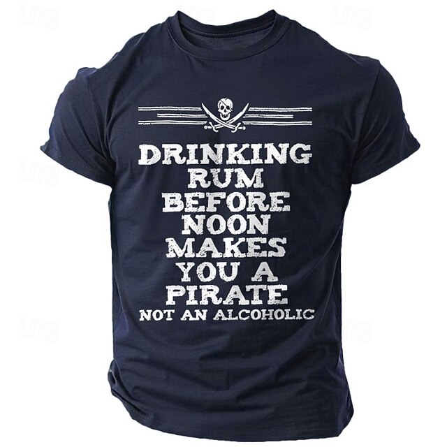 Men's Funny Pirate T-Shirt - Drinking Rum Before Noon Graphic Lifestyle Tee Short Sleeve