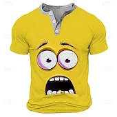 in-demand ! Men's Cartoon Human face T Shirt Henley Shirt Short Sleeve Designer Retro Vintage Casual Street Casual Daily Summer Spring Yellow Green Red Blue Purple Henley Henley T-Shirt