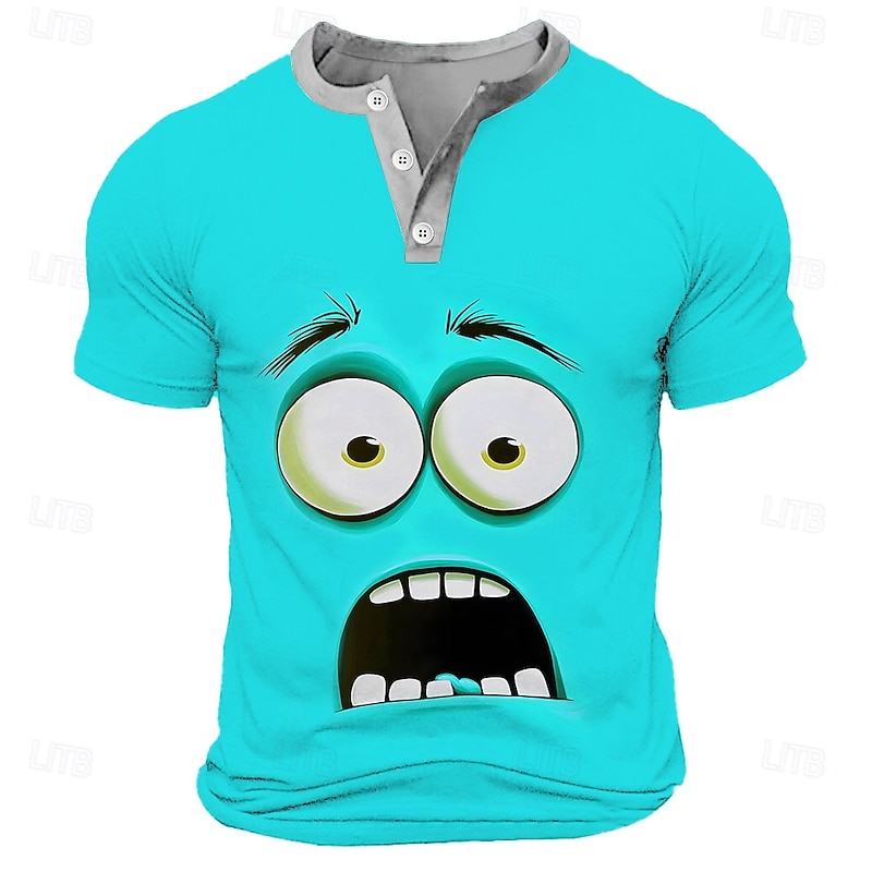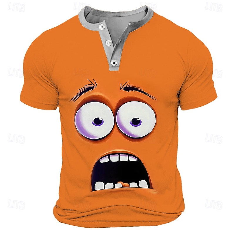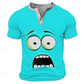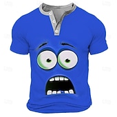 More information about Men's Cartoon Human face T Shirt Henley Shirt Short Sleeve Designer Retro Vintage Casual Street Casual Daily Summer Spring Yellow Green Red Blue Purple Henley Henley T-Shirt