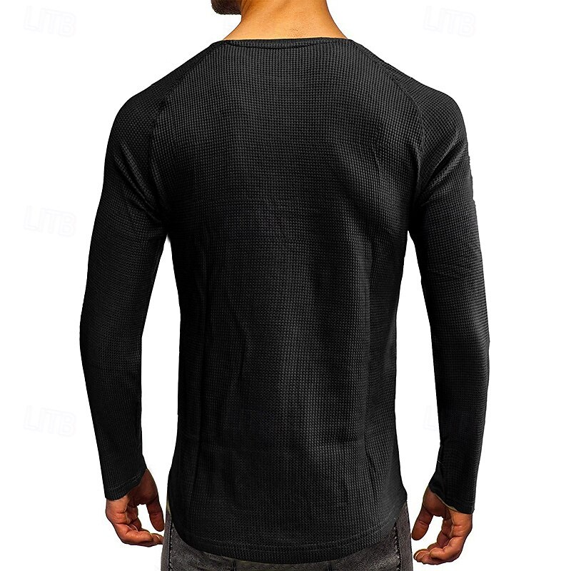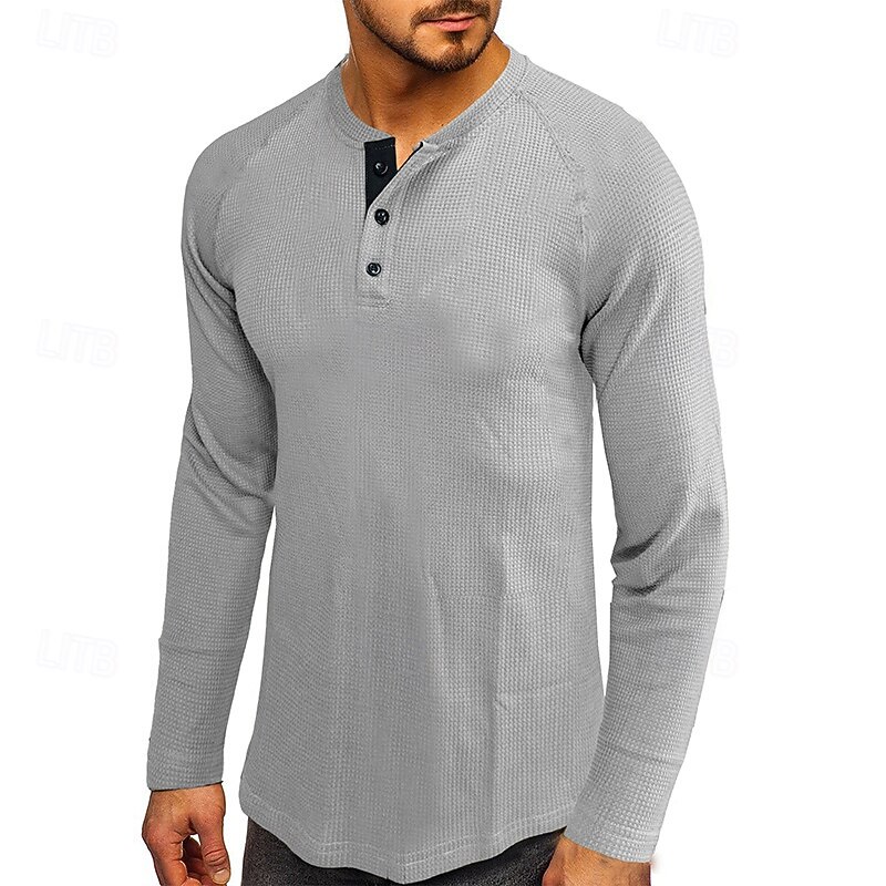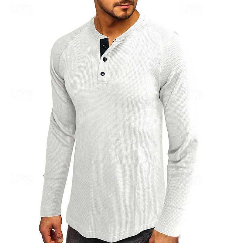 More information about Men's Button T Shirt T Shirt Henley Shirt Tee Long Sleeve Henley Fall & Winter Plain Fashion Designer Basic Vacation Street Going out Black White Wine Top Tee for Men