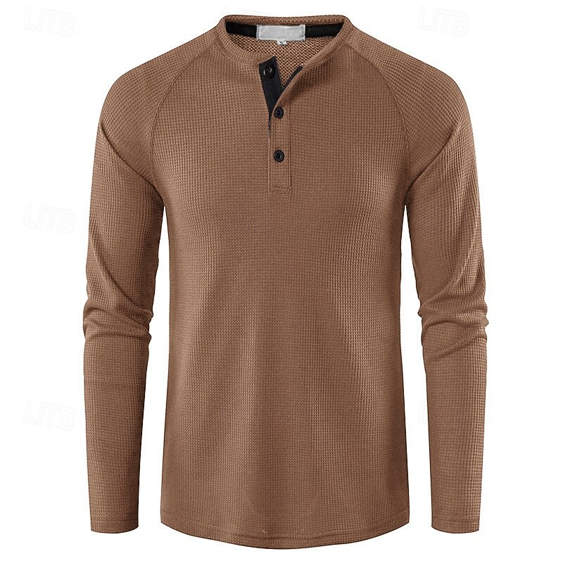 Highlights - Long sleeves for added warmth and style - Designed for men - Basic, yet versatile style - Henley shirt for a vintage look - Perfect for vacation or casual wear
