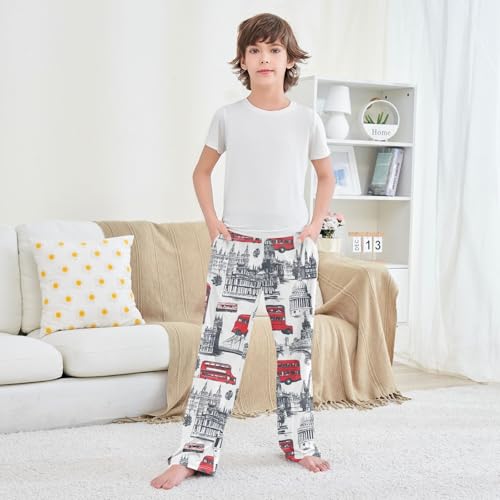 More information about London Bridge Big Ben Boys Long Pants velvety Trousers Elastic Waist Kids Lounge Bottoms with Pockets S-XL