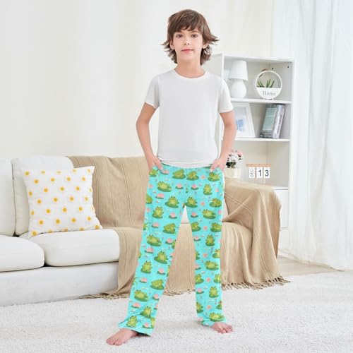 in-demand ! Frog Lotus Floral Boys Long Pants plush Trousers Elastic Waist Kids Lounge Bottoms with Pockets S-XL