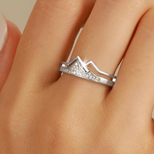 in-demand ! 925 Sterling Silver Mountain Ring for Women CZ Hill Faith Moves Moutains Inspirational Rings to Daughter Mother Stacking Wave Ring Dainty Keep Climbing Bands Wedding Christmas Jewelry Gifts