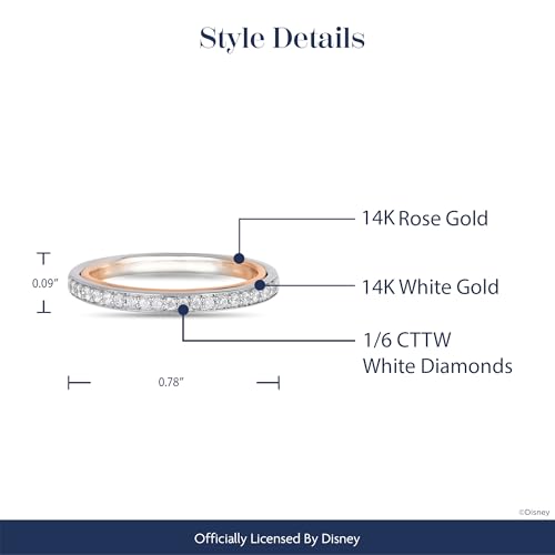 Jewelili Enchanted Disney Fine Jewelry Belle Wedding Band for Women | 14K White & Rose Gold | 1/6 CTTW Natural White Round Diamonds | Disney Princess Inspired Jewelry Gifts for Her