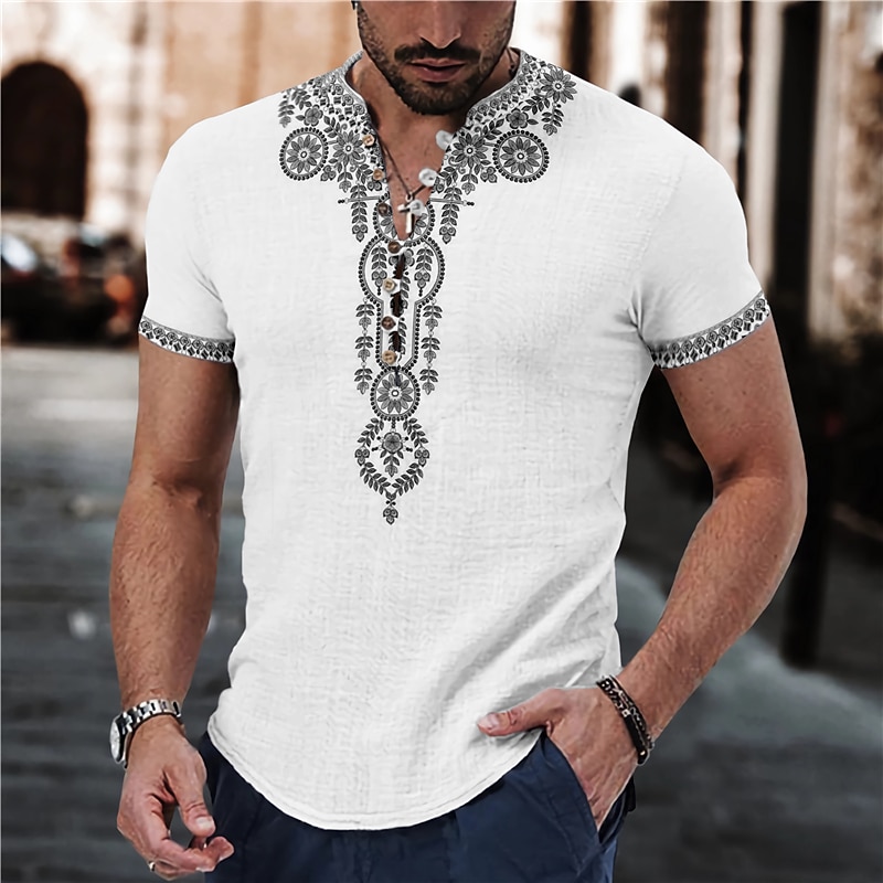 in-demand ! Men's Floral Ethnic Shirt Linen Shirt Button Up Shirt Short Sleeve Fashion Streetwear Designer Outdoor Casual Daily Spring & Summer Stand Collar Print Yellow Red Blue Green Gray