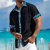 More information about Men's Ethnic Button Up Shirt Printed Shirts Short Sleeve Hawaiian Resort Outdoor Party Business / Ceremony / Wedding Summer Turndown Print Button-Down Black