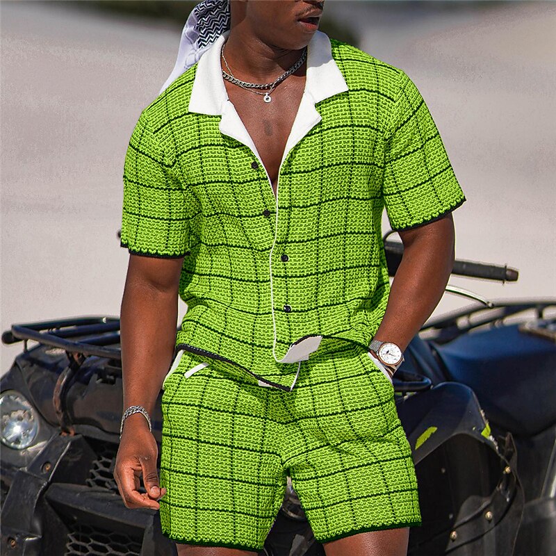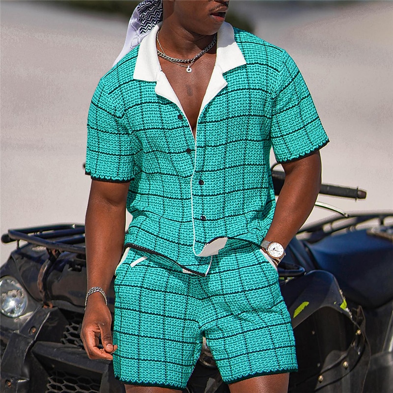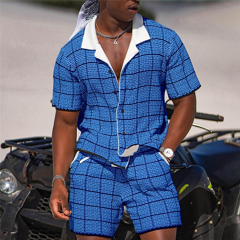 $34.99 - Men's Plaid Geometric Pattern 2pcs Shirts Sets Summer Hawaiian Shirt Short Sleeve Short Pants Cuban Collar Fashion Streetwear Designer Outdoor Daily Going out Print Summer Spring Navy Blue Blue Sky 2025. Shop for cheap Men's Printed Shirts Sets online? Buy at lightinthebox.com on sale today!