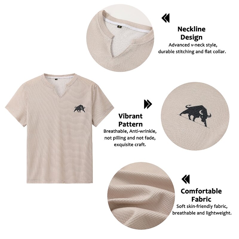 More information about Men's Waffle T Shirt V Neck Clothing Apparel 3D Print Outdoor Daily Sports Short Sleeve Fashion Designer Basic