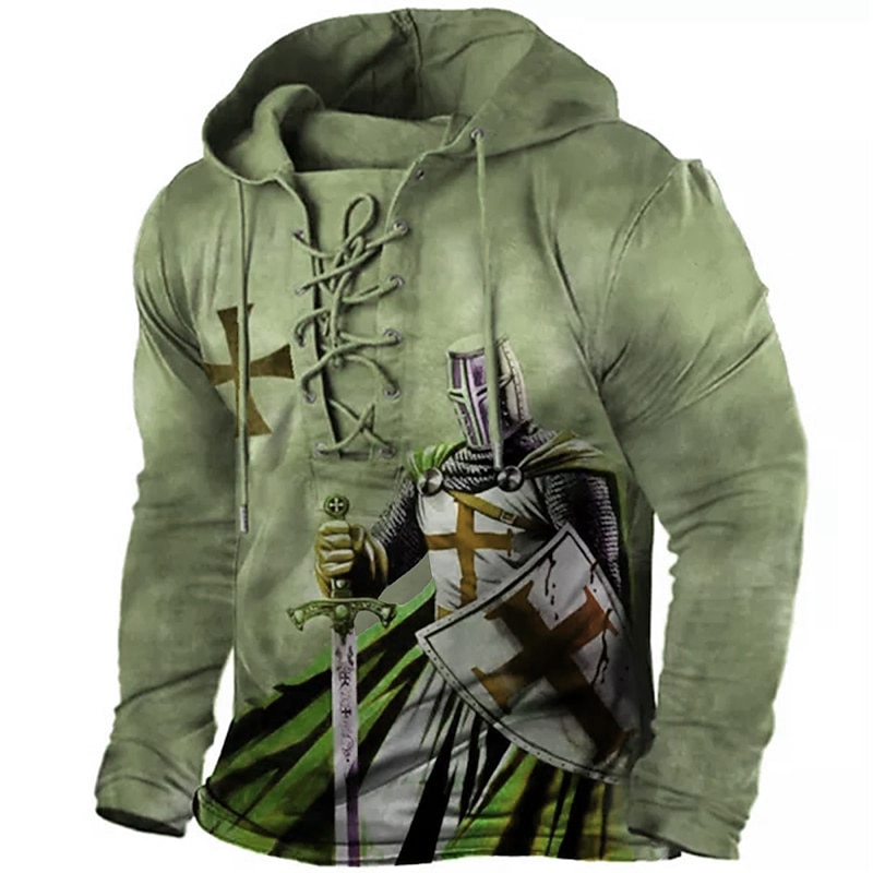 This Men's Knights Templar Graphic Prints Hoodie Hoodies Sweatshirt Designer Casual Long Sleeve Hooded Sports & Outdoor Daily Sports Army Green Red Lace up Print Spring & Fall Designer combines elegant design with practical functionality. Every detail has been carefully considered to ensure you get the top possible experience. The top-grade construction means this product will serve you well for years to come.