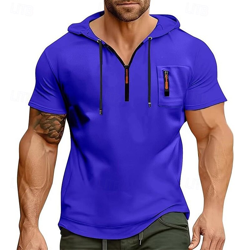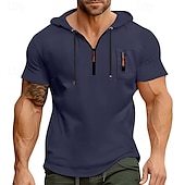 - Perfect for men, this top features short sleeves and a trendy hooded neckline