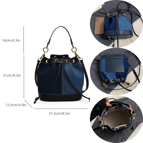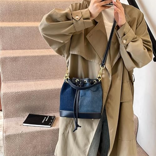 Denim Bucket Bag for Women Handbag Trendy Jean Purse Drawstring Crossbody Shoulder Bag