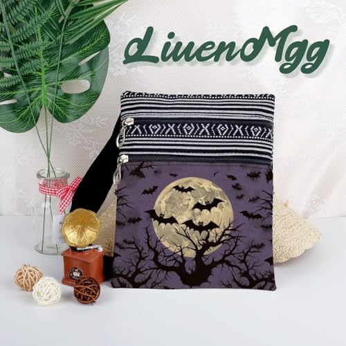 Halloween Night Bat Messenger Bag Small Ethnic Pattern Printed Adjustable Strap Crossbody Zipper Bag Halloween Night Bat Phone Bag Wallet Cute Shoulder Handbag for Women
