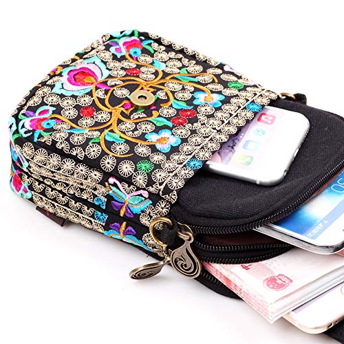 SILKAREA Embroidered Cute Mini Crossbody Bag for Women Small Handbags Wristlet Wallet Bag Cell-phone Pouch Coin Purse