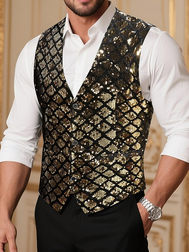 This Men's Vest Waistcoat Gilet Vacation Party Business Fashion Casual Spring Fall Pocket Buttons Sequin Polyester plush Argyle Single Breasted One-button V Neck Regular Fit Gold Vest combines elegant design with practical functionality. Every detail has been carefully considered to ensure you get the best possible experience. The premium construction means this product will serve you well for years to come.