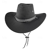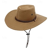 Highlights [Fabric] : This sophisticated cowboy hat is crafted from high-quality faux suede, offering a rugged yet sophisticated look with a velvety finish. It's designed to provide both durability and comfort, making it ideal for prolonged wear. [Fit] : Featuring a wide brim, this hat offers excellent sun protection while maintaining the classic silhouette of a western cowboy and fedora trilby hat. The adjustable chin strap ensures a secure and customizable fit for outdoor adventures or themed events. [Design Highlights] : The hat is elegantly accented with a twisted rope band around the crown, adding a touch of sophistication. Metal eyelets are included for ventilation, enhancing comfort during extended use. Its vintage style is inspired by 18th-century fashion and the iconic State of Texas look. [Occasions] : Perfect for daily wear, theme parties, or cosplay events, this hat adds a touch of cowboy flair to any wardrobe. It's suitable for all seasons, combining functionality with fashion to complement a variety of occasions. [Size] : Available in a one-size-fits-all range, accommodating head circumferences from 56-58cm. This ensures a comfortable fit for most men seeking a timeless, fashionable accessory. Perfect for everyday use. first-class materials and excellent craftsmanship ensure long-lasting durability.