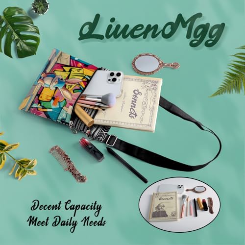 Street Art Rabbit Messenger Bag Small Ethnic Pattern Printed Adjustable Strap Crossbody Zipper Bag Street Art Rabbit Phone Bag Wallet Cute Shoulder Handbag for Women Friends -1