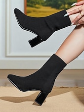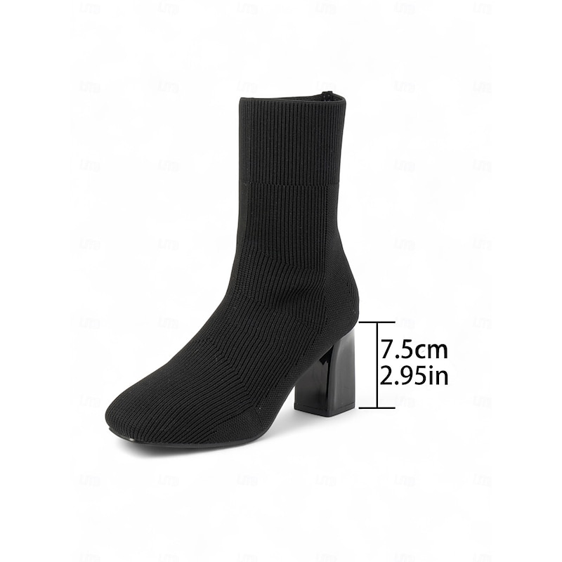 More information about Women's Black Knit Sock Fashion Boots – Stretch Ankle Booties with Block Heels for Fall Winter Streetwear and Casual Outfits