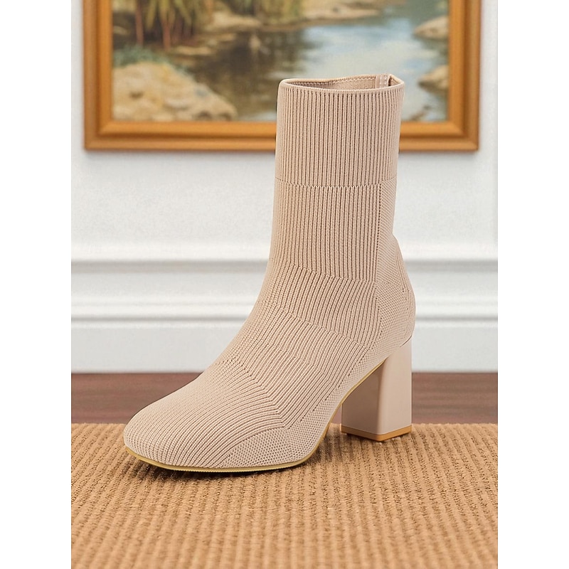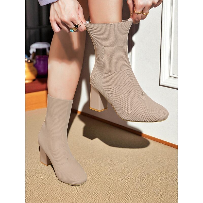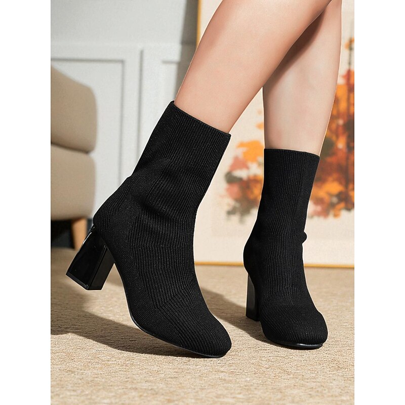 in-demand ! Women's Black Knit Sock Fashion Boots – Stretch Ankle Booties with Block Heels for Fall Winter Streetwear and Casual Outfits