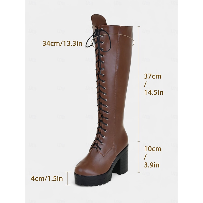 More information about Women's Black Platform Knee-High Lace-Up Boots - Faux Leather Chunky Heel Gothic Boots for Fall Winter Streetwear , Daily Outfits and Halloween Fashion