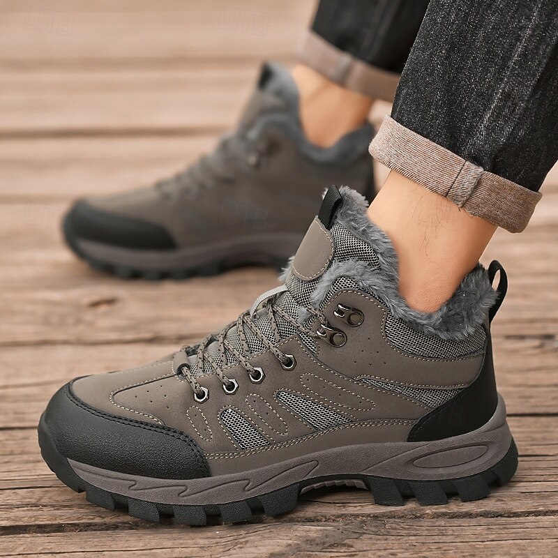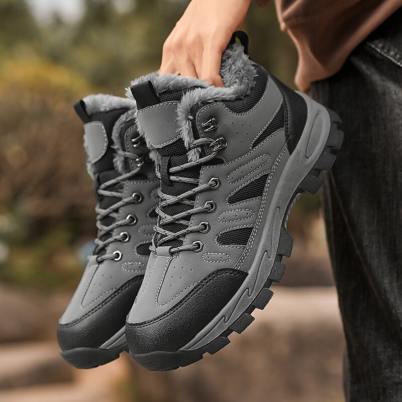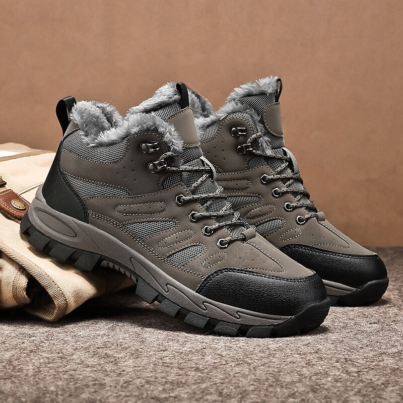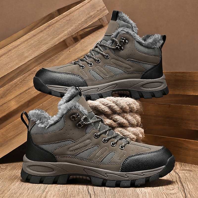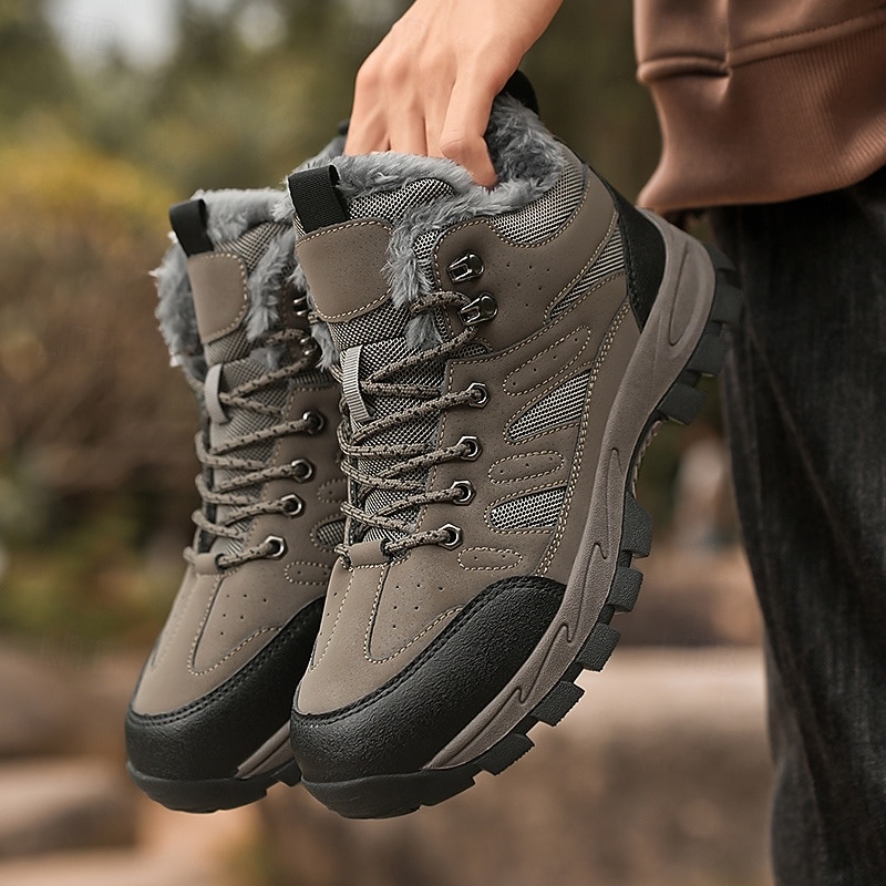 Highlights [Fabric] : Crafted from sturdy PU leather combined with breathable mesh fabric, these men's yellow hiking boots offer a winning combination of durability and airflow. The interior is lined with soft fleece, ensuring utmost warmth and comfort throughout your winter expeditions. [Fit] : Designed as robust high-top boots, they provide excellent ankle support and stability. The padded collar and secure lace-up closure ensure the boots fit snugly, offering enhanced support for a variety of terrains. [Design Highlights] : These boots feature a reinforced lacing system with metal eyelets for added durability and a touch of rugged style. The deep-tread rubber outsole is engineered for maximum grip, ensuring slip-resistant performance on snow and ice. [Occasions] : Perfect for winter hiking, outdoor adventures, or simply navigating icy city streets. These versatile boots are built for any winter activity, combining functionality with a sophisticated appearance that complements various outdoor ensembles. [Size Range] : Available in a comprehensive range of sizes from US7 to US11, these boots cater to a wide audience, ensuring a perfect fit for diverse foot shapes and sizes. Perfect for everyday use. first-class materials and excellent craftsmanship ensure long-lasting durability.