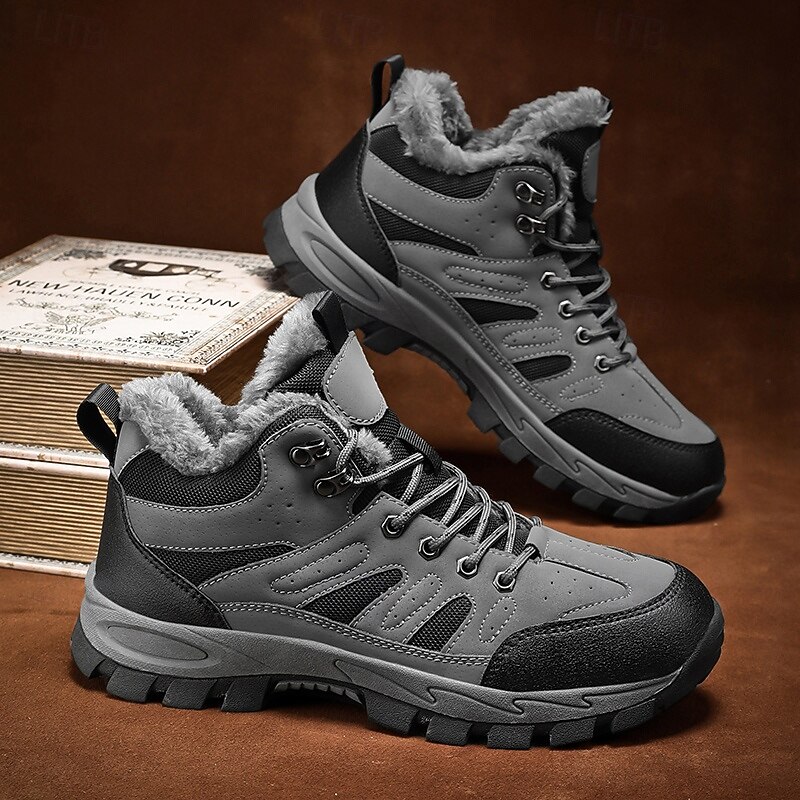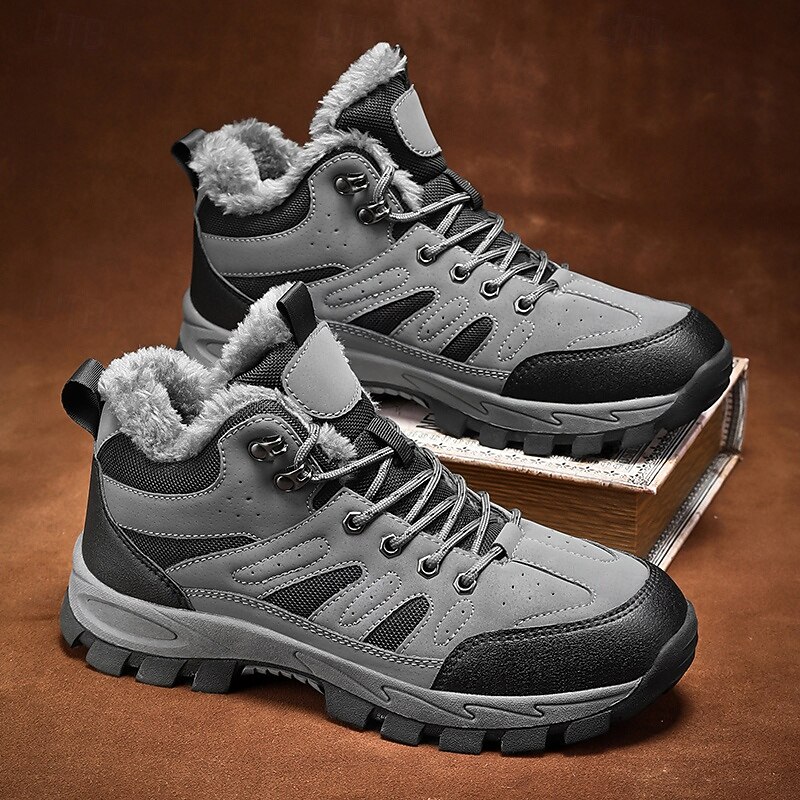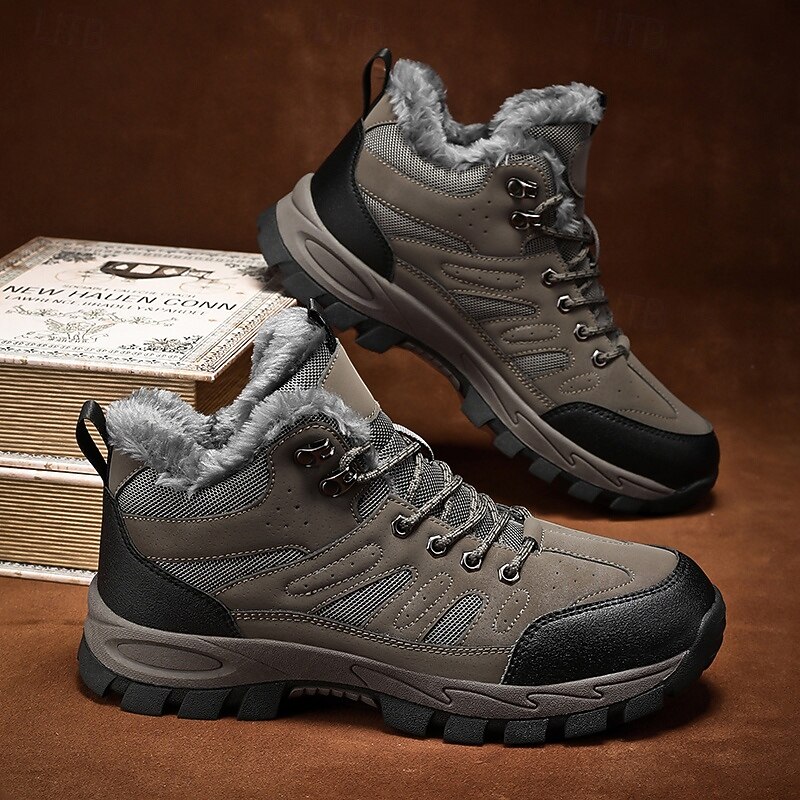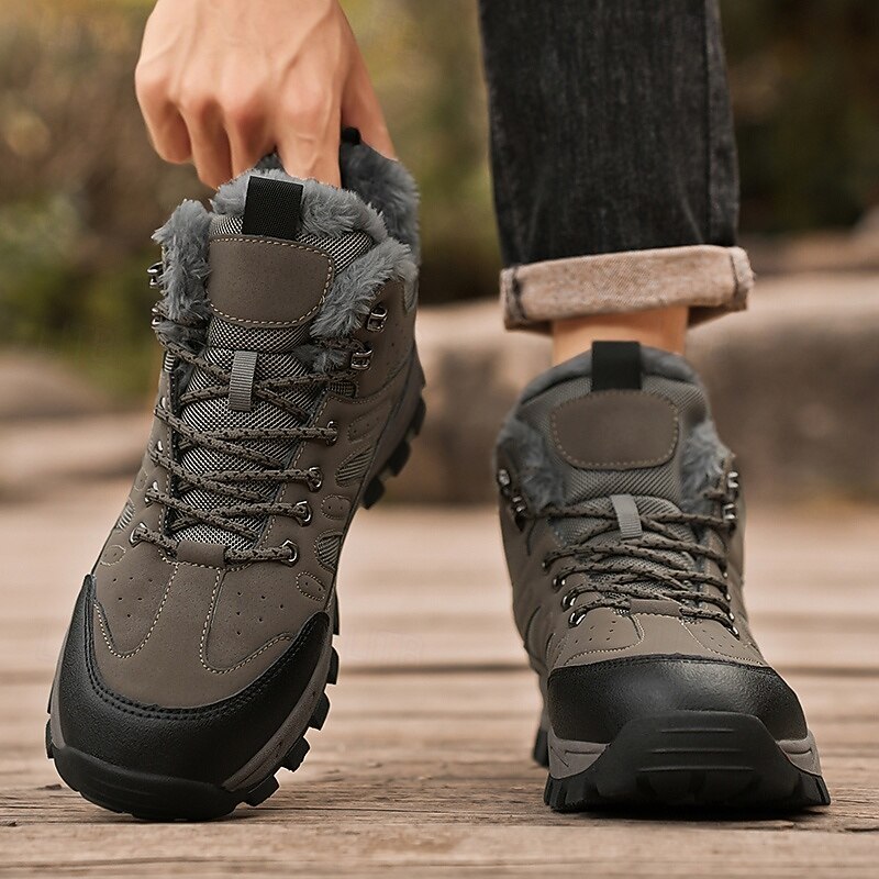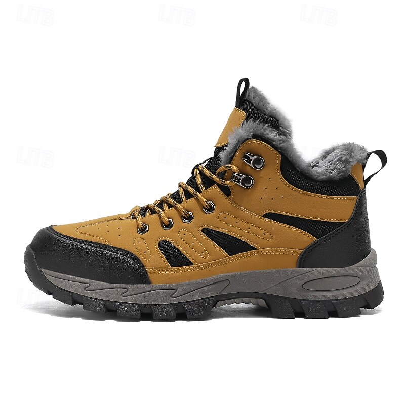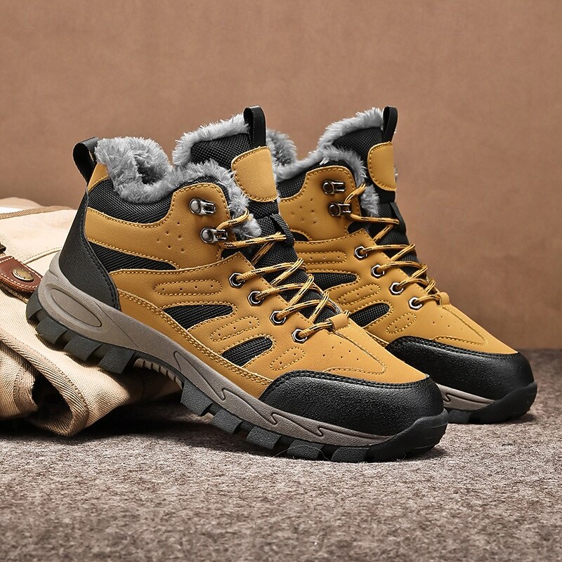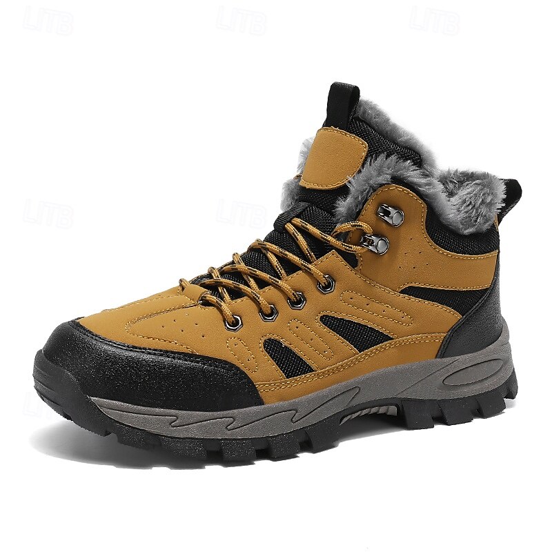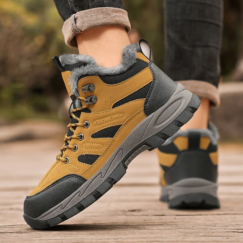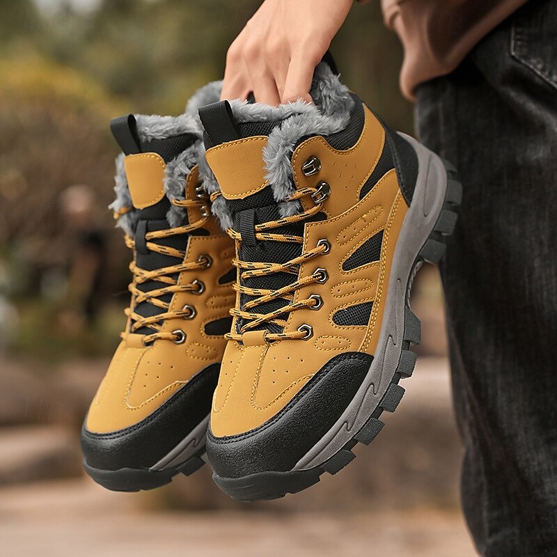 Men's Yellow Hiking Boots with Fur Lining – Waterproof Outdoor Winter Shoes with Anti-Slip Rugged Soles