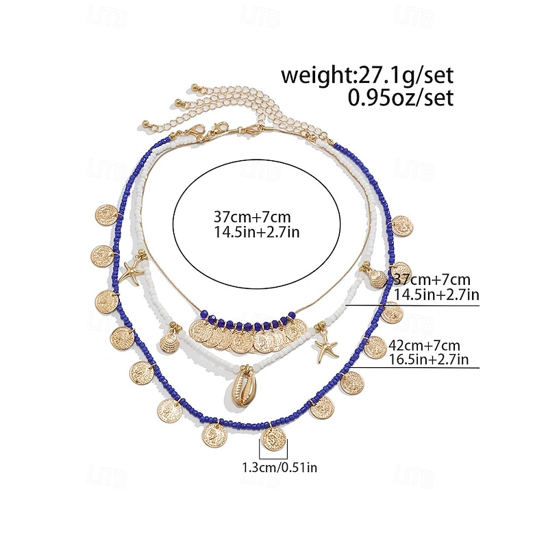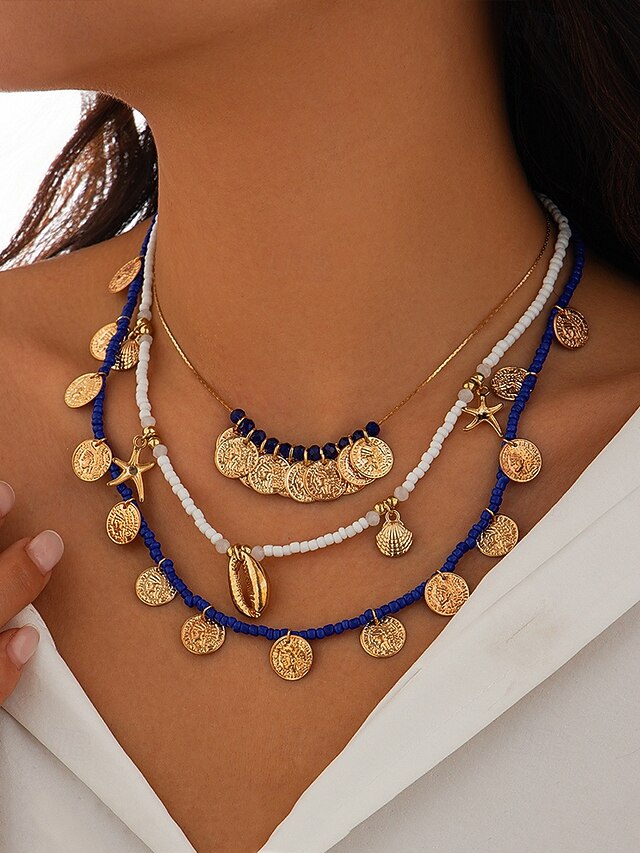 $11.99 - Gold and Blue Beaded Shell and Coin Charm Necklace Set for Women – Beach Boho Style Layered Necklaces with Starfish and Shell Accents for Summer and Vacation 2025. Shop for cheap Women's Necklace online? Buy at lightinthebox.com on sale today!
