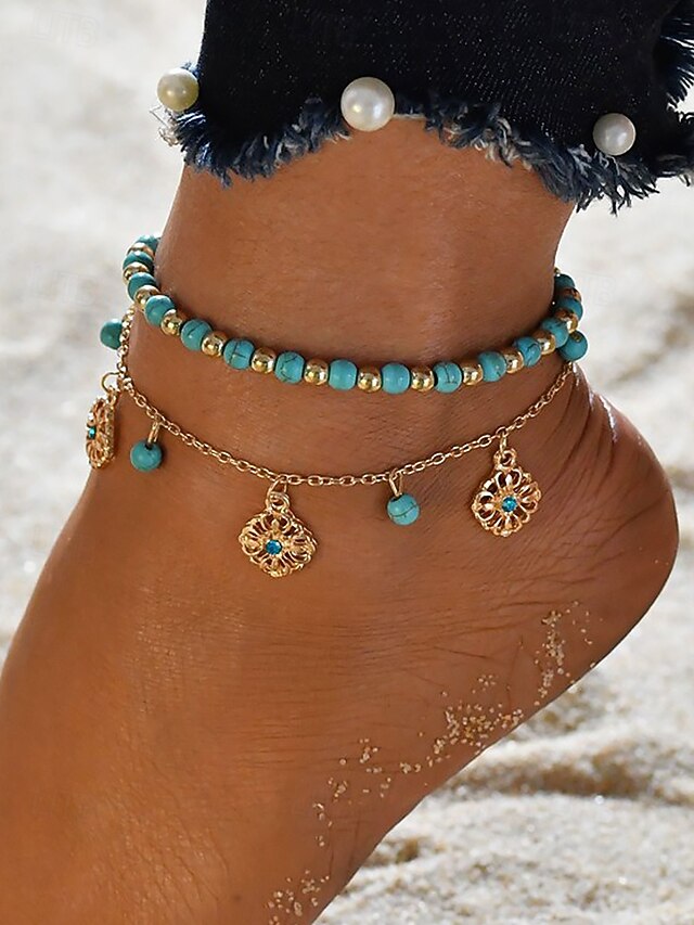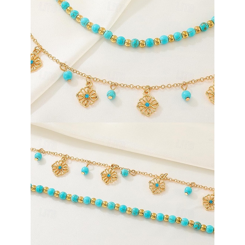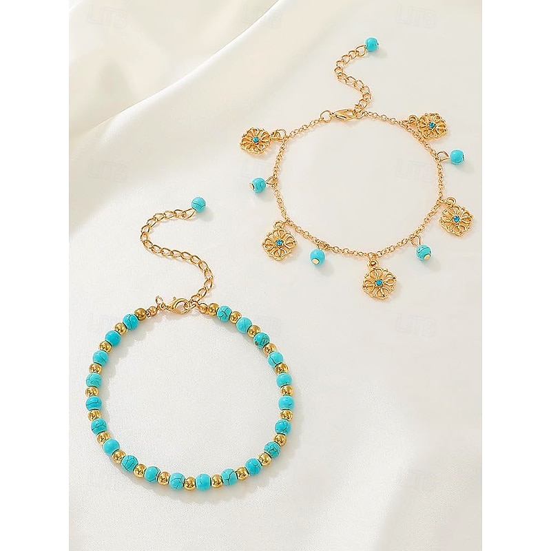 $7.99 - Women's Turquoise Beaded Anklet Set with Gold Plated Charms – Bohemian Beach Jewelry for Summer Vacations and Festivals 2025. Shop for cheap Women's Bracelet online? Buy at lightinthebox.com on sale today!