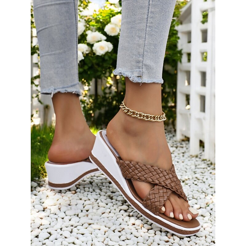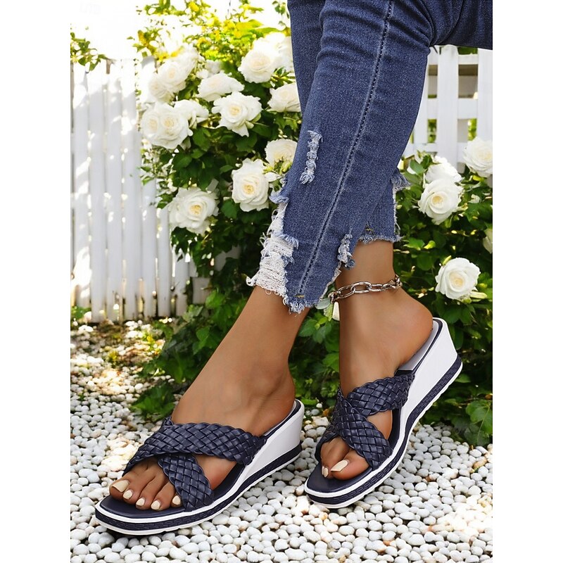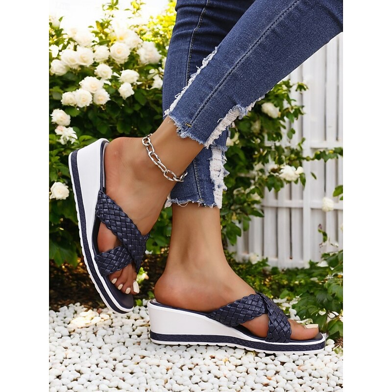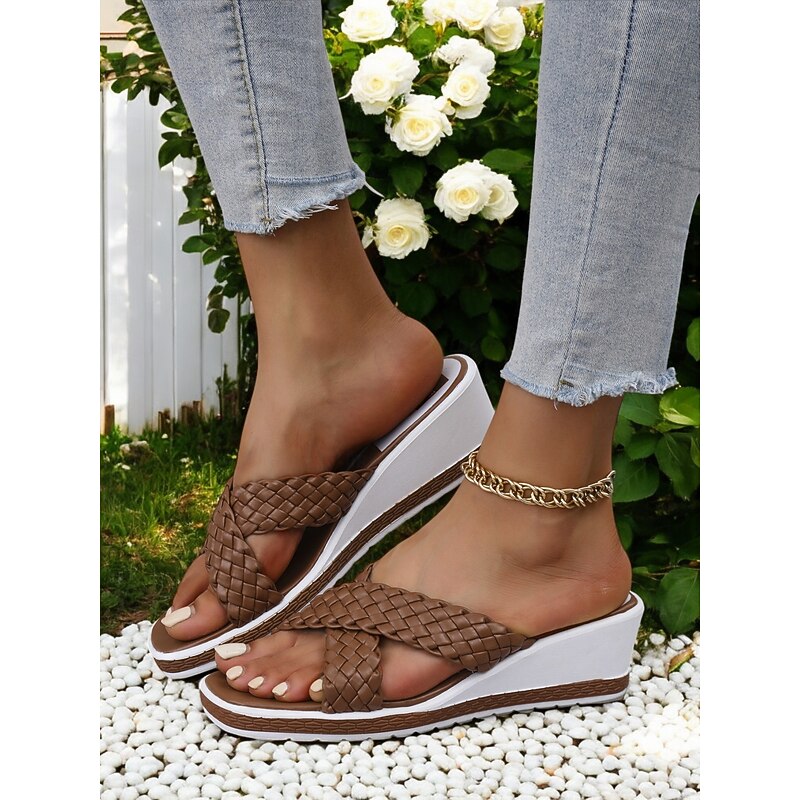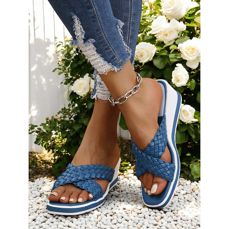 Why Choose Women's Woven Wedge Slide Sandals – Casual Cross Strap Open Toe Sandals for Summer & Vacation?