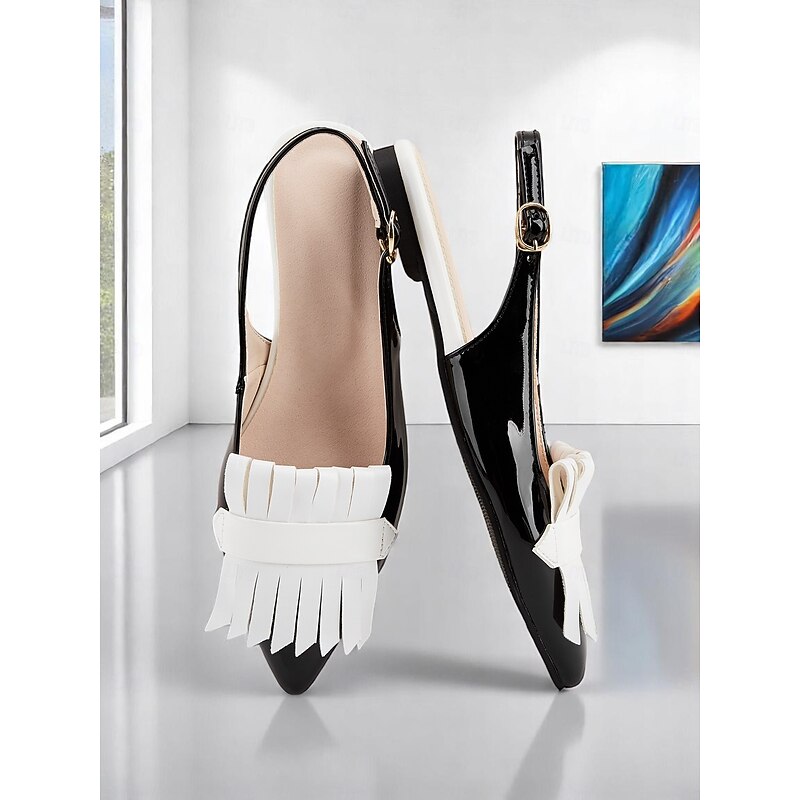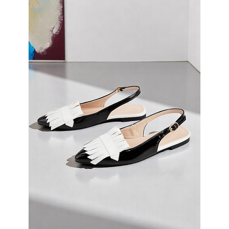 Why Choose Women's Black Patent Leather Slingback Flats - Elegant Glossy Finish with Fringed Detail, magnificent for Business and Casual Outings?