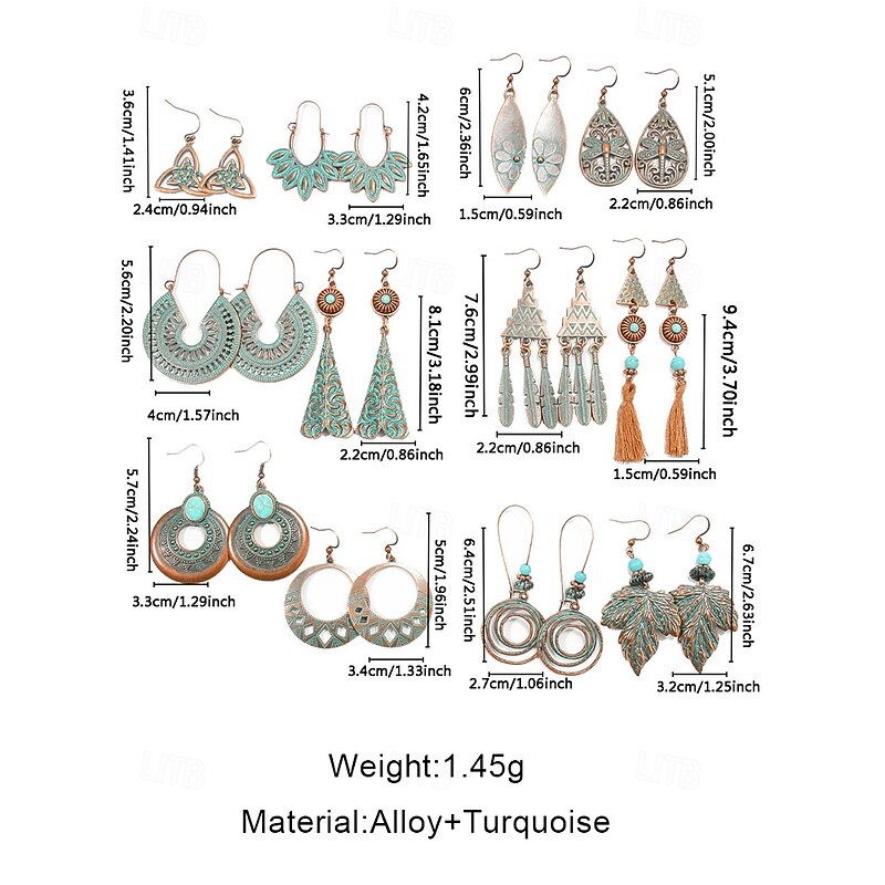 $11.99 - Women's Boho Vintage Turquoise Dangle Earrings Set - Vintage Tribal Style Lightweight Dangle Earrings with Antique Bronze Finish for Holiday Casual Outings and Gifts 2025. Shop for cheap Women's Earring online? Buy at lightinthebox.com on sale today!