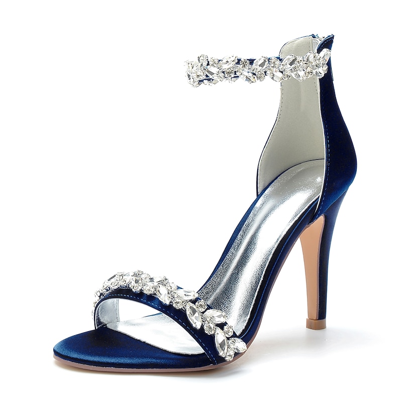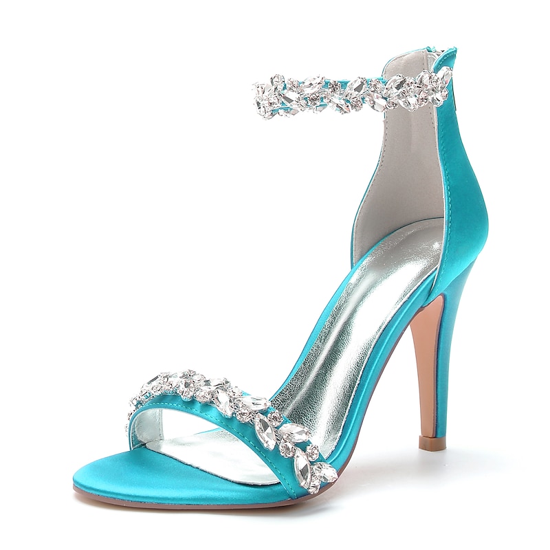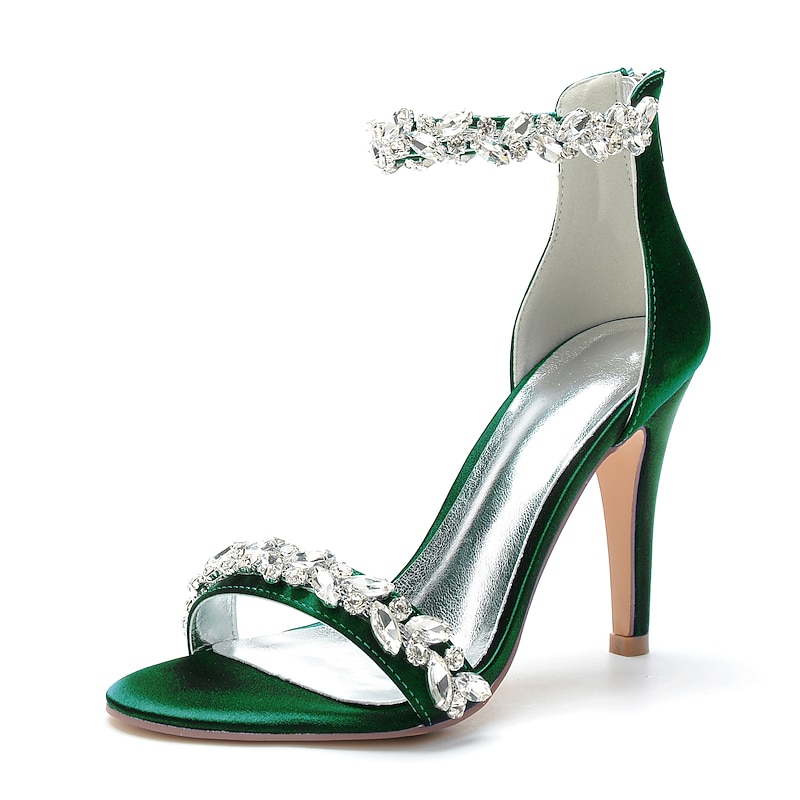 More information about Women's Wedding Shoes Bling Bling Sparkling Shoes Bridal Shoes Crystal Stiletto Pointed Toe Minimalism Satin Zipper Green / Blue Black White