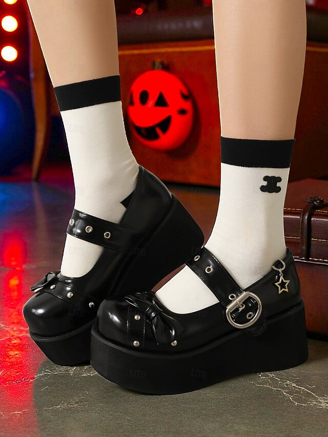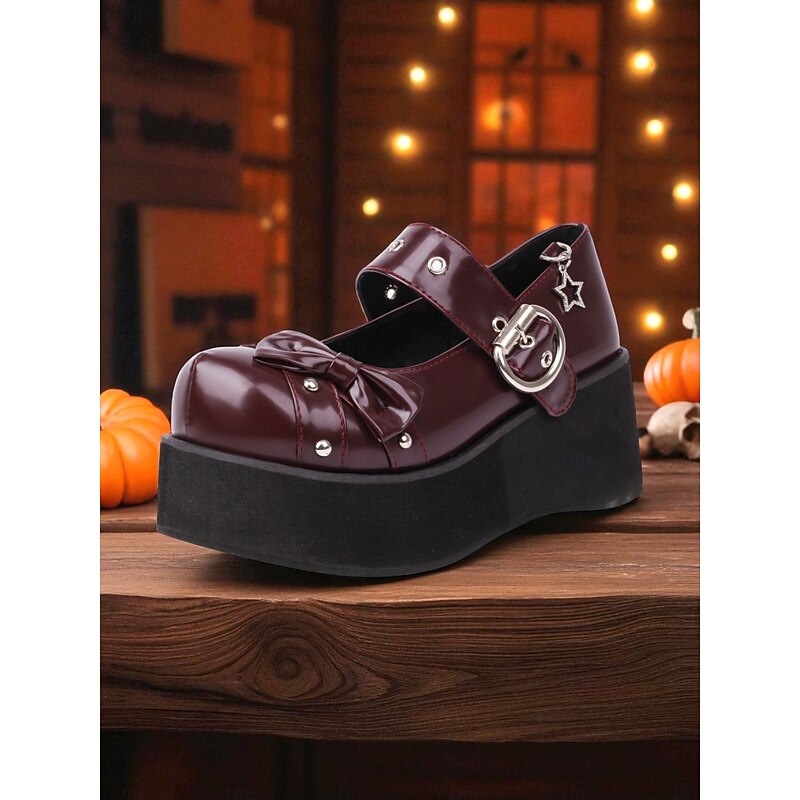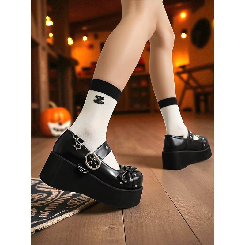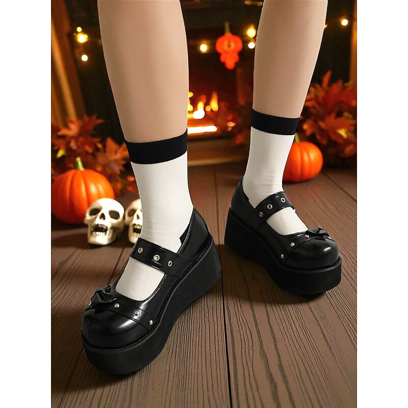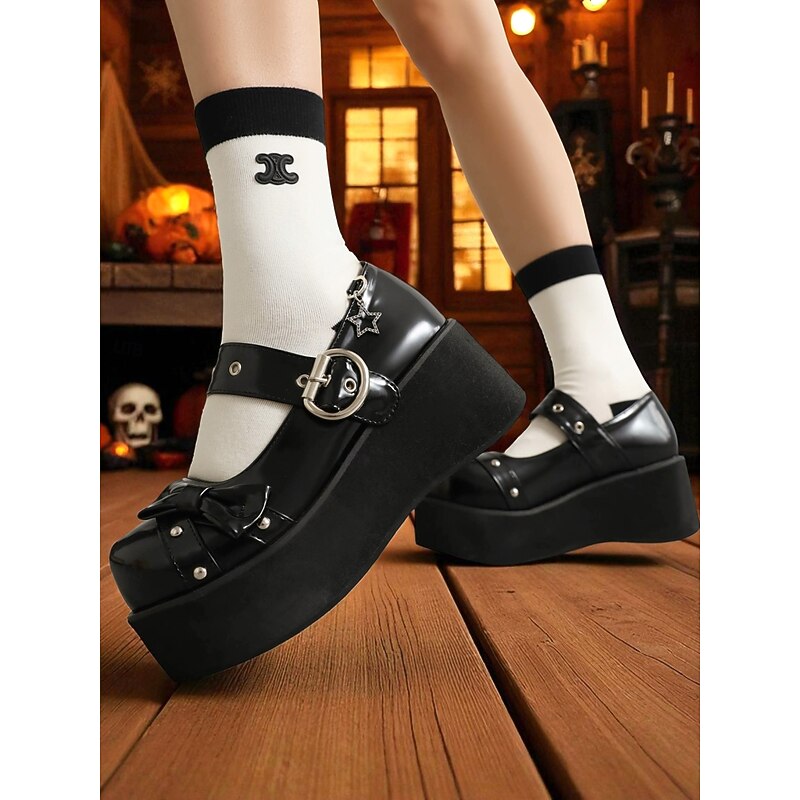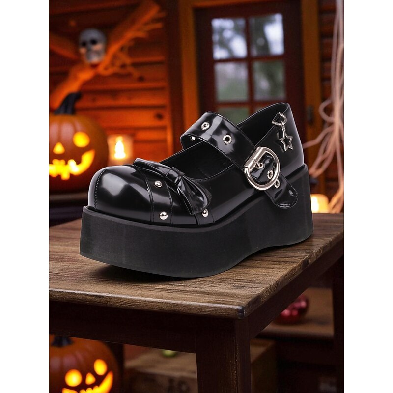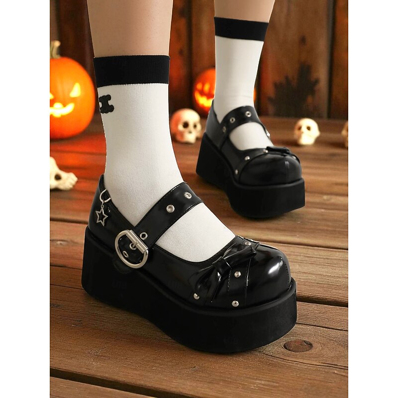 $54.99 - Women's Black Platform Mary Jane Shoes with Studs and Bow – Gothic Lolita Style Flats for Halloween, Cosplay and Alternative Fashion Lovers 2025. Shop for cheap Shoes For Women online? Buy at lightinthebox.com on sale today!