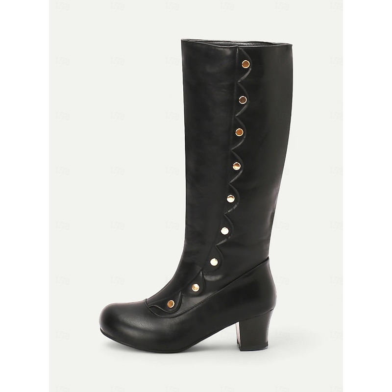 Highlights [Fabric] These knee-high boots are crafted from premium PU upper materials, ensuring a durable and high-quality finish. The interior is lined with synthetic leather, providing a comfortable and soft feel for all-day wear. The boots have a sleek look with a polished, vintage finish. [Fit] Designed with a streamlined silhouette, these boots offer a flattering fit that gracefully contours to the leg's natural shape. The rounded toe design ensures ample space for comfort, complemented by a stable chunky heel that provides subtle elevation and support. [Design Highlights] Featuring a chic button decoration on the side, these boots add a sophisticated and sophisticated element to any outfit. The distinctive button design enhances the overall visual appeal of the boots, giving them a refined, modern touch. The adjustable strap allows for customized comfort and fit. [Occasions] Perfect for a range of occasions from daily wear to work and outdoor activities, these boots seamlessly transition between casual and semi-formal settings. Whether pairing with jeans or dresses, they bring a touch of elegance and chic style to any ensemble. [Size Notice] Available in a range of sizes from US5.5/EU35 to US10.5/EU42, these boots are designed to fit standard sizes, allowing you to select your usual size with confidence. Perfect for everyday use. finest materials and excellent craftsmanship ensure long-lasting durability.