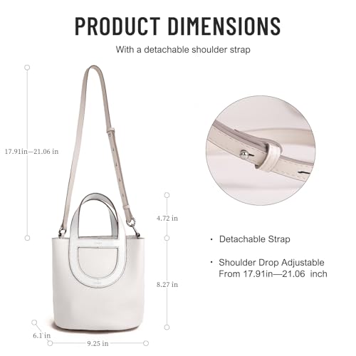 Genuine Leather Purse for Women: Designer Crossbody Bucket Bags for Ladies - Fashion Top-handle Handbag for Travel Work(Ivory White)