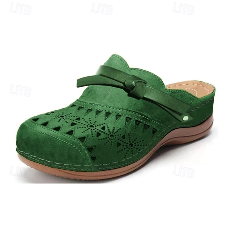 Highlights [Fabric & Material] Crafted with high-quality faux leather, these women’s clogs offer a classic and minimalistic appeal. The soft and durable material features an intricate laser-cut floral design, enhanced by a decorative bowknot, providing both elegance and breathability. [Style & Fit] Designed with a versatile slip-on style, these clogs feature a flat heel for comfort, rounded toes that ensure a relaxed fit, and a cushioned interior for day-long support. A non-slip PU outsole provides reliable traction, making these shoes perfect for daily wear. [Design Highlights] The elegant laser-cut floral design on the faux leather upper offers an intricate and sophisticated look, while a decorative bowknot adds a charming touch. The shoes feature a slightly elevated platform for a subtle lift, complemented by a convenient loafer-style closure. [Suitable Occasions] Ideal for daily wear, outdoor adventures, and walking activities, these clogs seamlessly blend functionality with a chic aesthetic. Whether for a casual outing or a leisurely stroll, these clogs provide comfort and style. [Size Range] Available in a range of sizes from 36 to 43, these clogs ensure a perfect fit for a variety of foot shapes. It is recommended to select one size larger than usual for optimal comfort. Choose from a selection of vibrant colors, including dark blue, brown, red, green, blue, and light green, to perfectly complement your outfit. Perfect for everyday use. finest materials and excellent craftsmanship ensure long-lasting durability.