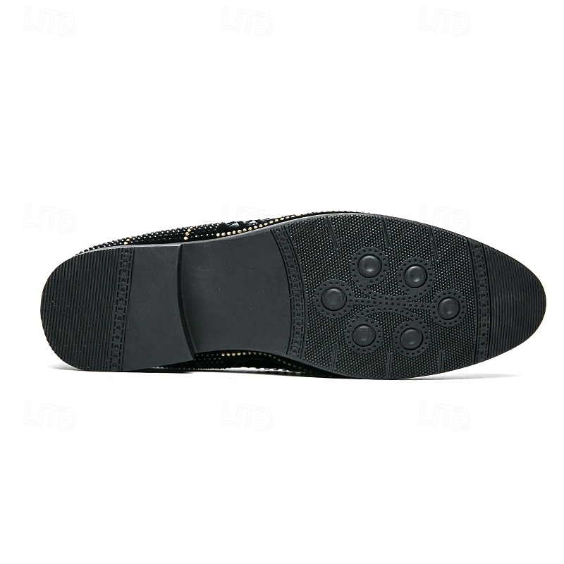 More information about Men's Prom Shoes - Black Studded Velvet Loafers with Spiral Design for Luxurious Occasions