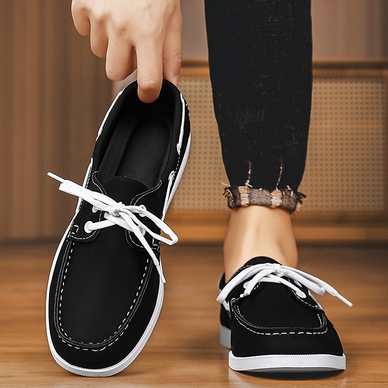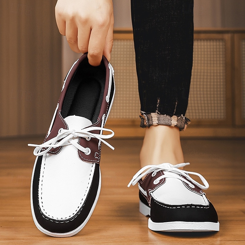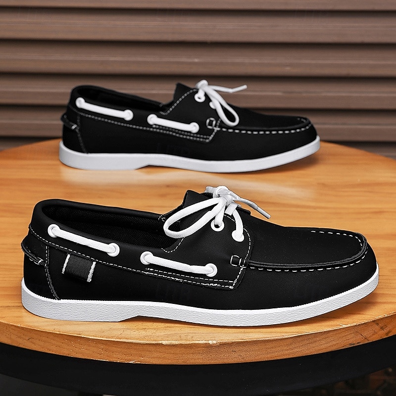 Why Choose Men's Black and White Two-Tone Boat Shoes with retro Lace-Up Design Comfortable and sophisticated Ideal for Beach Trips Casual Wear and Summer Events?