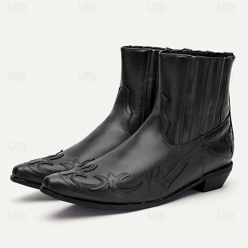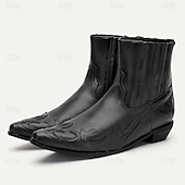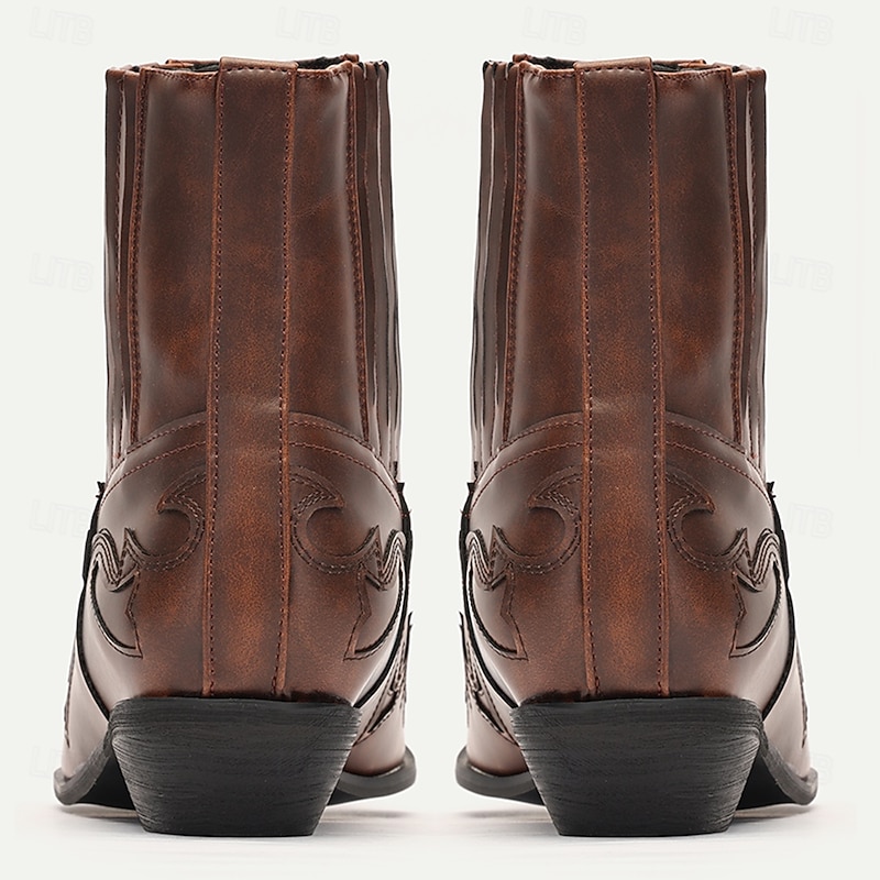 Highlights [Fabric and Material] These Men's Brown Faux Leather Western Ankle Boots are crafted from premium PU material, known for its durability and polished appearance. The rich brown hue offers a classic and versatile look, ideal for various outfits in your wardrobe. [Fit and Style] Designed with comfort in mind, these ankle boots feature a casual round toe and a snug fit that supports all-day wear. The low heel provides stability without sacrificing style, making them perfect for both cowboy and casual looks. The loafer-style closure adds to their ease of wear with elastic side panels for a snug fit. [Design Highlights] The boots boast intricate Western-style embroidery along the upper part, enhancing their visual appeal and adding a exceptional touch to the classic cowboy design. The engaging patterns bring a sophisticated charm, effortlessly merging vintage style with contemporary appeal. [Occasions] Ideal for both daily wear and special occasions, these boots are perfect for those looking to add a rustic edge to their ensemble. Whether you're aiming for a casual walk or looking to complement formal attire with a bit of western flair, these boots seamlessly blend fashion with function. [Size Range and Suggestions] These boots are available in a variety of sizes, from US5.5 to US12, ensuring a suitable fit for everyone. It is recommended to select your usual size for the best fit and comfort. Perfect for everyday use. first-class materials and excellent craftsmanship ensure long-lasting durability.