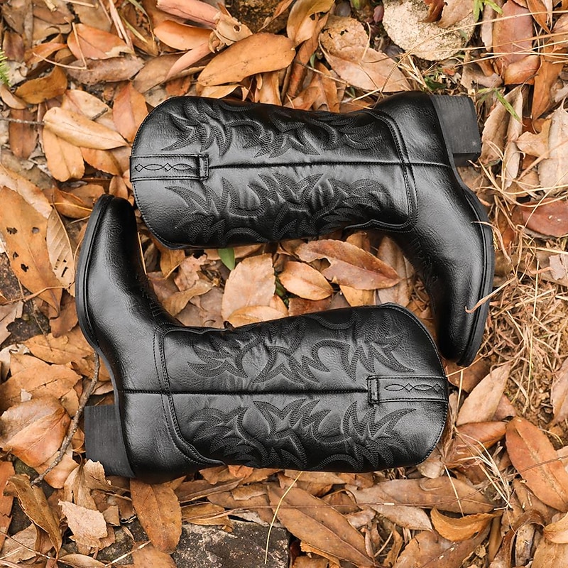 Highlights [Fabric & Material] : Crafted from top-quality PU leather, these men's cowboy boots are designed for durability and warmth, ideal for winter wear. The high-grade material ensures a robust exterior with a comfortable interior lining for a snug fit. [Style & Shape] : These vintage vintage boots boast a refined knee-high shaft, embodying the timeless appeal of Western cowboy style. The pointed toe and sturdy block heel provide a perfect blend of tradition and latest sophistication, suitable for both casual and semi-formal settings. [Design Highlights] : Featuring intricate embroidery along the classic brown upper, these boots showcase a subtle yet elegant design. The detailed stitching enhances the boots' personality while maintaining a rugged and authentic Western vibe. [Occasions] : Perfect for outdoor adventures, these boots are your go-to choice for winter outings, adding style and comfort to various occasions. Whether it's a casual day out or a more structured gathering, these boots adapt seamlessly, providing excellent grip and stability. [Size Information] : Available in a variety of sizes from US6-12 to accommodate different foot sizes comfortably. The standard sizing ensures an easy selection of your usual size for the perfect fit.