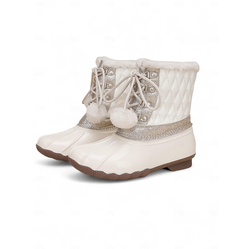 in-demand ! Girl's Winter Snow Boots - heated Quilted Ankle Boots with Faux Fur Lining, Glitter Detail and Pom Pom Laces for Outdoor Wear