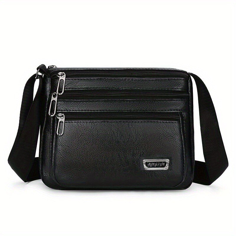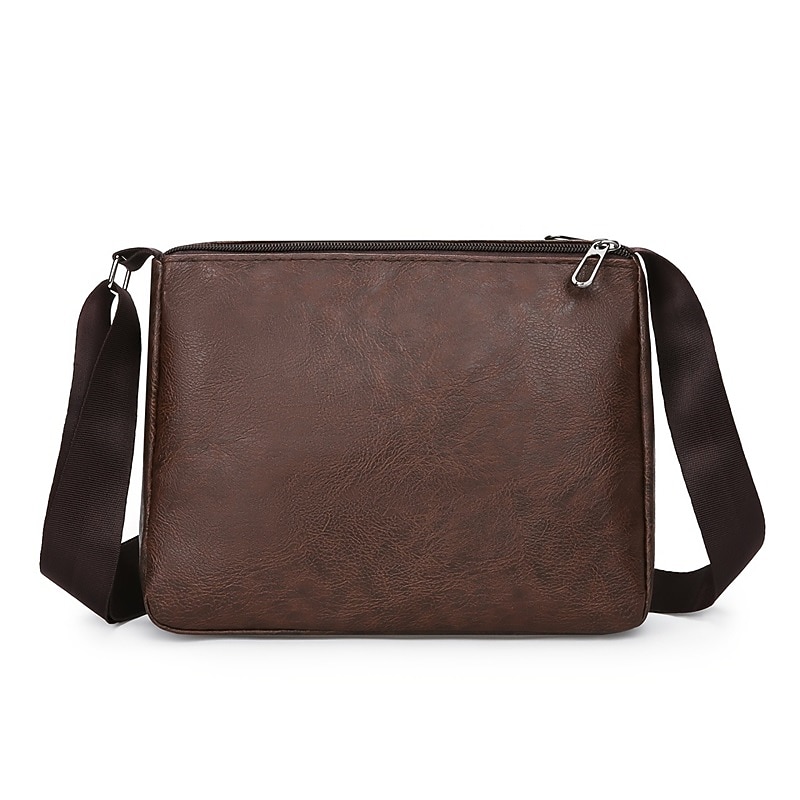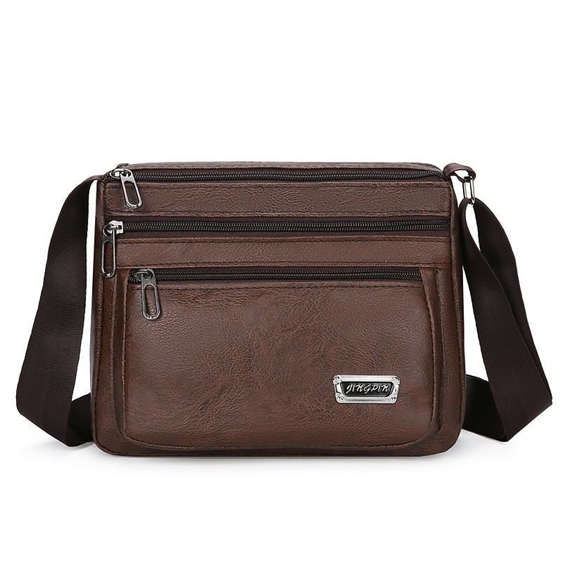 Men's Brown Faux Leather Crossbody Bag - Multi-Zipper Pockets Messenger Shoulder Bag for Everyday Use and Travel