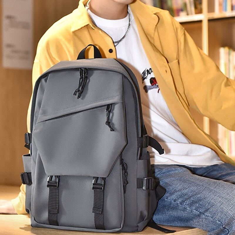 More information about Men's Women's Backpack School Bag Bookbag Functional Backpack Commuter Backpack School Outdoor Solid Color Nylon Adjustable Large Capacity Waterproof Zipper Black White Pink