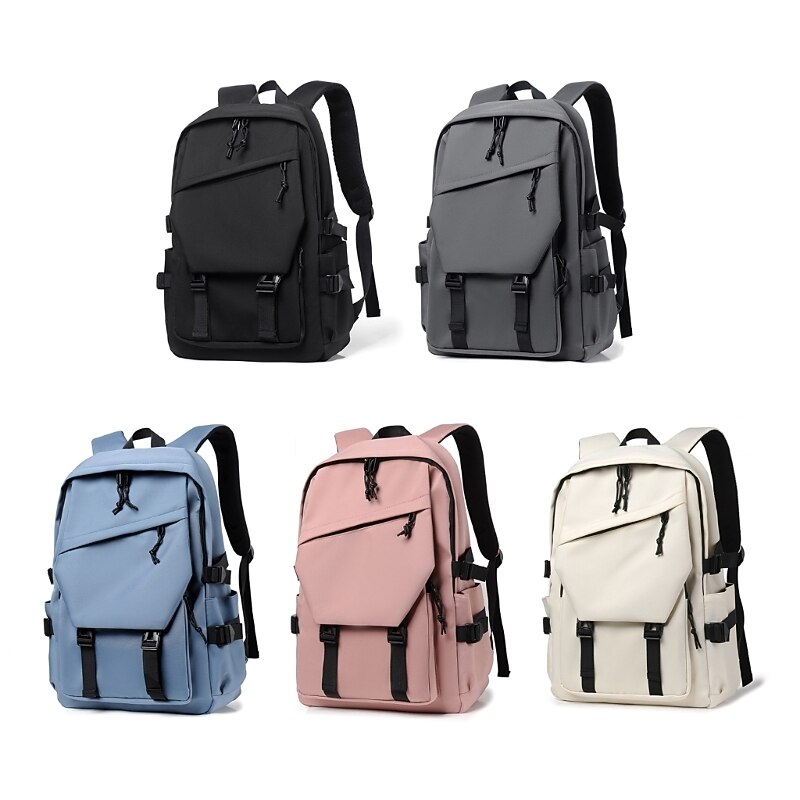 in-demand ! Men's Women's Backpack School Bag Bookbag Functional Backpack Commuter Backpack School Outdoor Solid Color Nylon Adjustable Large Capacity Waterproof Zipper Black White Pink