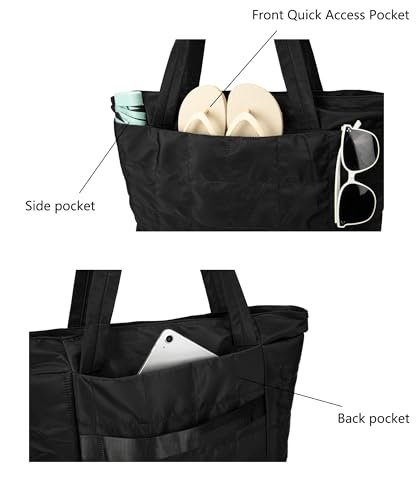 Tote Bag for Women Lightweight Quilted Shoulder Bag With Zipper for Work Travel Gym, Expandable Handbag