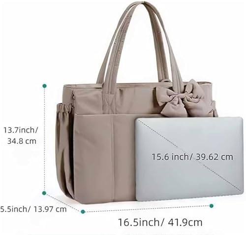 Origin: ImportedClosure type: Magnetic【Elegant Quilted Bow Design】The Luvy Bag features a soft, puffy quilted texture with a detachable decorative bow, offering a chic and feminine look. This sophisticated crush tote combines modern fashion with timeless charm, making it a perfect accessory to elevate any outfit for work, travel, or casual outings【Organized Multi-Pocket Design】Equipped with a variety of functional pockets including a dedicated phone sleeve, a spacious laptop compartment, and several zippered strap pockets along with a specially designed side pocket for large bottles everything remains neatly organized and easily accessible for daily use or travel【Waterproof And Durable Material】Crafted from high-quality waterproof washed fabric and smooth reliable zippers this bag effectively resists moisture ensuring long-lasting performance in various conditions making it ideal for both outdoor adventures and urban commuting【Spacious and organized storage space】Features an extra-large main compartment and a dedicated laptop sleeve, plus multiple pockets for storing accessories, clothes, books, or daily essentials—keeping everything organized【Stylish Versatile Appearance】With an elegant quilted texture a detachable decorative bow and a soft sophisticated color palette this bag effortlessly complements both casual and formal outfits blending fashion with functionality making it an ideal gift for modern lifestyles Perfect for everyday use. first-class materials and excellent craftsmanship ensure long-lasting durability.